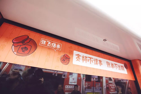 12月18日,借著口碑爆款國(guó)劇《軍師聯(lián)盟之虎嘯龍吟》的熱播,以及主演吳秀波的光環(huán),51信用卡在杭州地鐵1號(hào)線,承包了一列三國(guó)主題的“軍師聯(lián)萌”的地鐵。