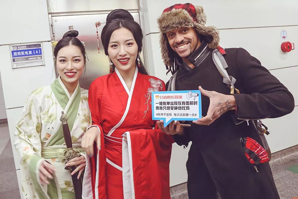 借用三國(guó)Q萌人物引發(fā)地鐵乘客好奇之余,51信用卡又來(lái)了次“三國(guó)本尊”的現(xiàn)實(shí)穿越。