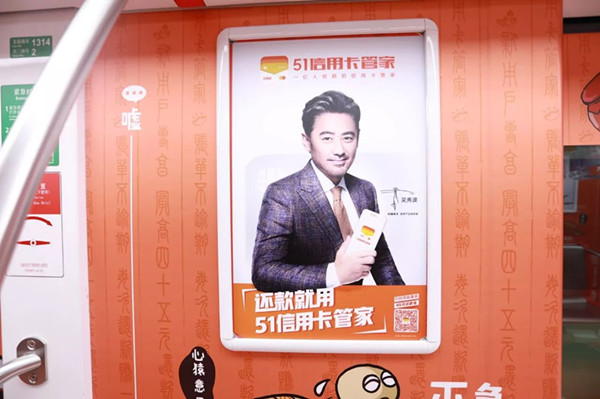 還有51信用卡首席產(chǎn)品體驗(yàn)官吳秀波,也出現(xiàn)在地鐵的廣告框中。