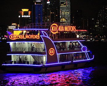 ——游輪介紹—— 船體尺寸:長45m*寬10m,共三層 媒體尺寸:12m(w) ╳ 1.5m(H) 載重:300人 1、船體外部廣告位:船身兩側LED或吸塑廣告 2、船體內部廣告位:1樓LED屏+吧臺廣告位+一至二樓背景墻+三樓船尾平臺+玻璃窗LOGO貼膜 客流量:8000萬-100000萬/年 出航頻次:年平均每日2班 亮燈時間:18:00-22:00 停靠碼頭:十六鋪碼頭 ——廣告報價—— 媒體刊例:980萬/年 廣告制作費:約20萬/次(須看具體尺寸及使用材料) 現(xiàn)上客戶:京東