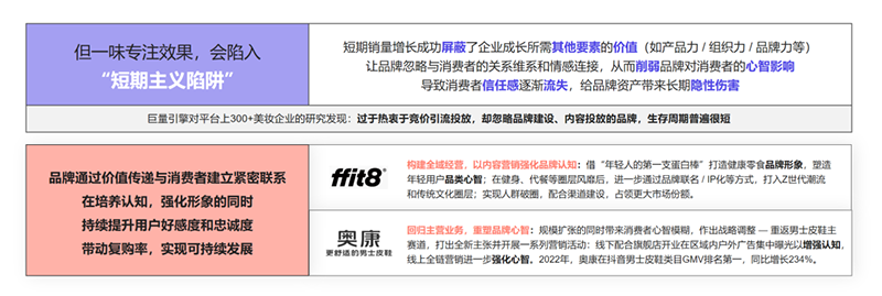 不能因為短期業(yè)績提升,忽略品牌長期健康發(fā)展,持續(xù)的品牌建設(shè)是賦能生意增長的重要手段。無論傳統(tǒng)品牌還是新消費品牌,越來越多的品牌主正在重新回歸品牌建設(shè)之路。