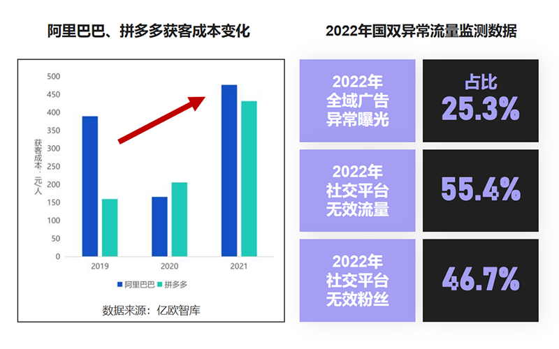 任何紅利都有窗口期,當(dāng)紅利被越多人發(fā)現(xiàn),打法被越多人模仿,靠紅利帶增長的路徑就越發(fā)擁堵,互聯(lián)網(wǎng)進入存量市場,流量成本上升疊加異常流量大量存在,買量就能帶轉(zhuǎn)化的狂飆時代已成過去。