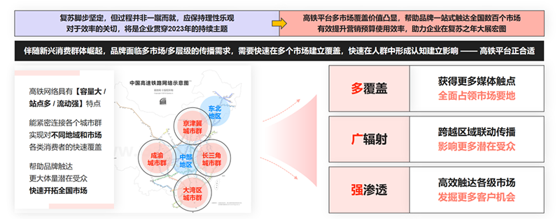 借助高鐵平臺,實現(xiàn)品牌對多目標(biāo)市場快速連接形成覆蓋,是企業(yè)實現(xiàn)效率優(yōu)先的明智之選。