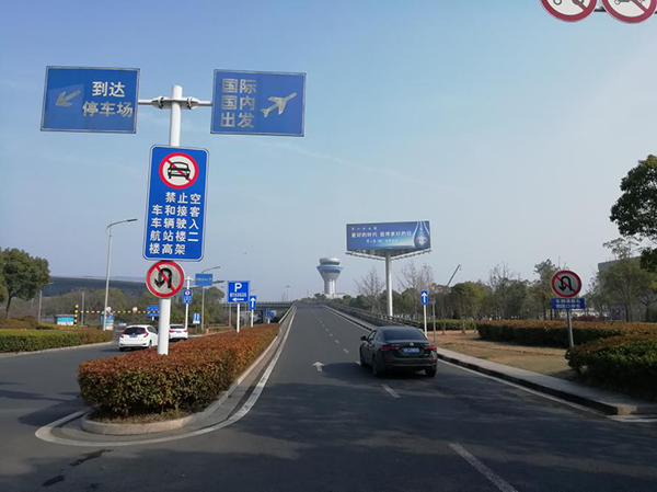 揚泰機場航站樓外南側(cè)二層高架上車道旁大牌廣告