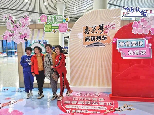 為方便旅客坐“杏花號(hào)”高鐵列車(chē)廣告動(dòng)車(chē)出行,烏魯木齊站、吐魯番北站開(kāi)辟了“杏花號(hào)”列車(chē)進(jìn)出站綠色通道。烏魯木齊客運(yùn)段乘務(wù)人員提前精心布置列車(chē)車(chē)廂,并設(shè)計(jì)了豐富的互動(dòng)活動(dòng),為出游旅客打造了溫馨、舒適、愉快的旅途。