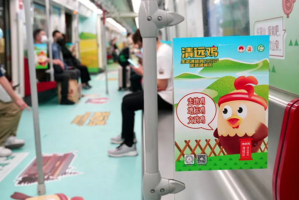 廣州地鐵3號(hào)線“清城區(qū)清遠(yuǎn)雞”專(zhuān)列廣告,每天可裝載約3.5萬(wàn)人次,宣傳周期內(nèi)將達(dá)約98萬(wàn)人次。列車(chē)兩側(cè)車(chē)門(mén)貼廣告、車(chē)窗貼廣告、地板貼廣告等配以清遠(yuǎn)雞的卡通IP形象與實(shí)物圖片讓車(chē)內(nèi)乘客紛紛拍照打卡。廣州地鐵車(chē)廂廣告上的二維碼也可以直達(dá)購(gòu)買(mǎi)界面。