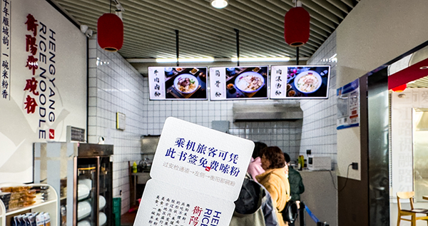 搜索衡陽機(jī)場(chǎng)或衡山旅游等話題,最讓人印象深刻的當(dāng)屬衡陽機(jī)場(chǎng)的手繪登機(jī)牌和憑登機(jī)牌免費(fèi)嗦粉,該店‘衡陽那碗粉’正處于航站樓候機(jī)大廳。地道的衡陽風(fēng)味,溫暖的機(jī)場(chǎng)服務(wù),讓旅客們?cè)诤怅枡C(jī)場(chǎng)航站樓頻頻拍照留念分享至社交媒體。