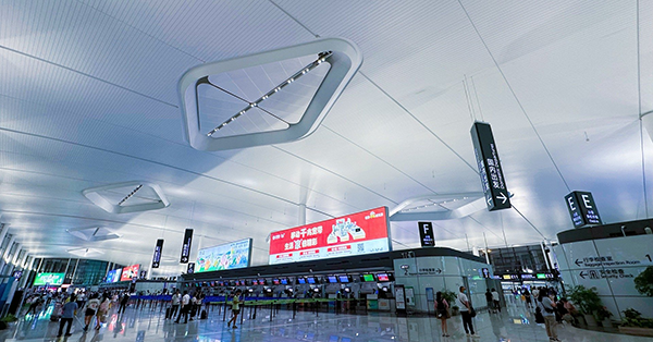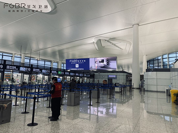 寧波機場安檢通道右側(cè)墻體上方LED大屏廣告