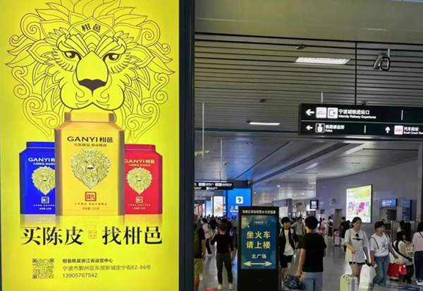 寧波高鐵站是中國國家“八縱八橫”鐵路客運專線上的大型綜合交通樞紐,觸達(dá)一二三四線多處城市節(jié)點,日均客流量已超10萬人次。柑邑陳皮以寧波高鐵站為錨點進(jìn)行強勢曝光,全面提升了品牌市場滲透力,實現(xiàn)了品牌傳播的廣度、速度以及準(zhǔn)度和深度。