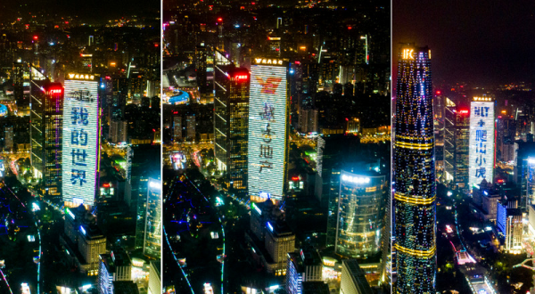 特別說明:廣州越秀金融大廈樓體燈光秀廣告接受粉絲應(yīng)援、示愛求婚告白等個人投放。