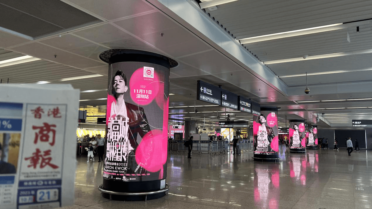 深圳北站5號(hào)線換乘區(qū)包柱LED廣告價(jià)格,演唱會(huì)案例深圳北高鐵廣告