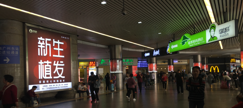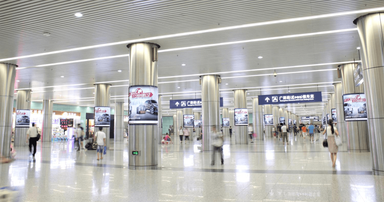 廣州東站進(jìn)站大廳包柱燈箱套裝廣告