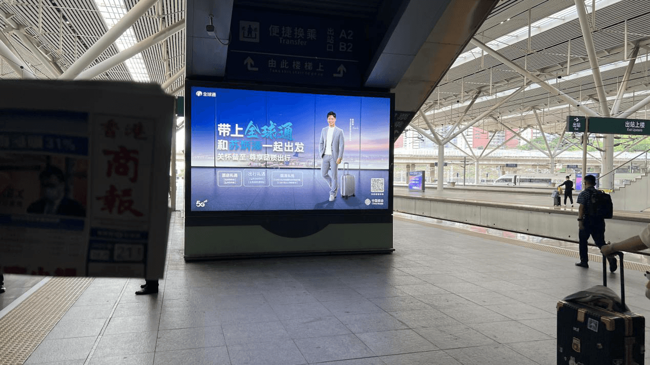 深圳北站站臺猛一抬頭竟然看到了蘇炳添蘇神的廣告!!中國移動你是懂速度的,帶上全球通和蘇神一起從深圳北站站臺出發(fā),享受品質差旅。今天第一戶外小編給大家?guī)?b>深圳北站站臺燈箱廣告價格和優(yōu)勢。