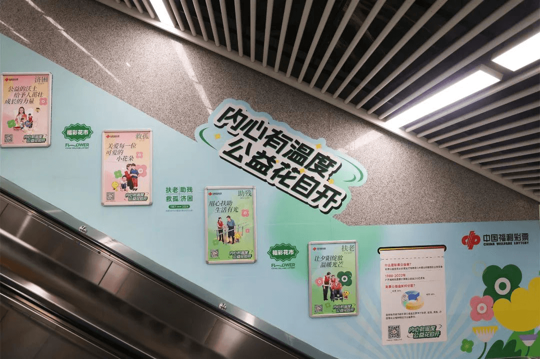 南寧地鐵口墻貼樓梯貼廣告價格?南寧地鐵站廣告福彩公益經(jīng)典案例