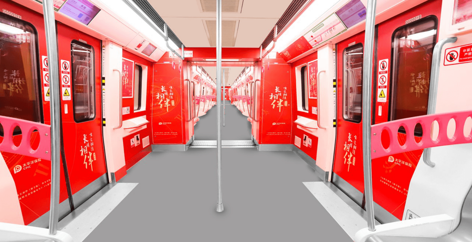 媒體內(nèi)容:窗頂橫條+車廂海報+車門貼(除車門玻璃窗部分)+車門兩側(cè)車廂貼+間壁門貼+車廂連接處貼