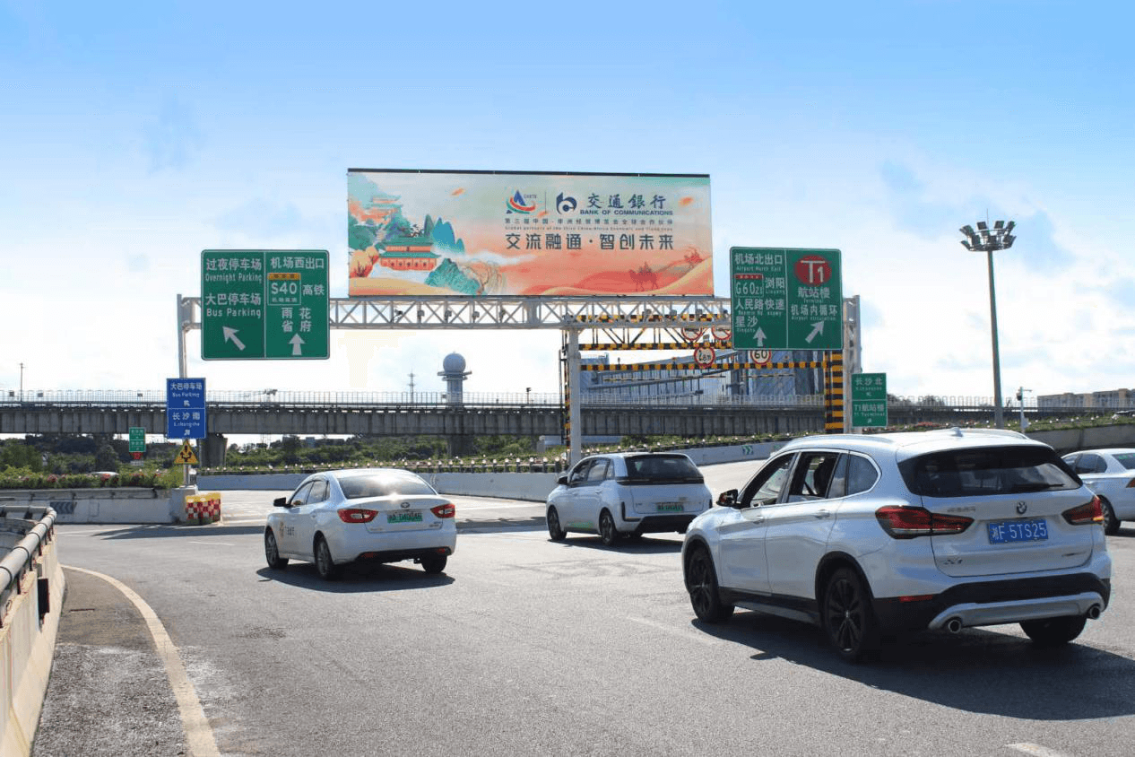 長沙黃花國際機(jī)場T2航站樓高速進(jìn)口屏、出口屏LED廣告