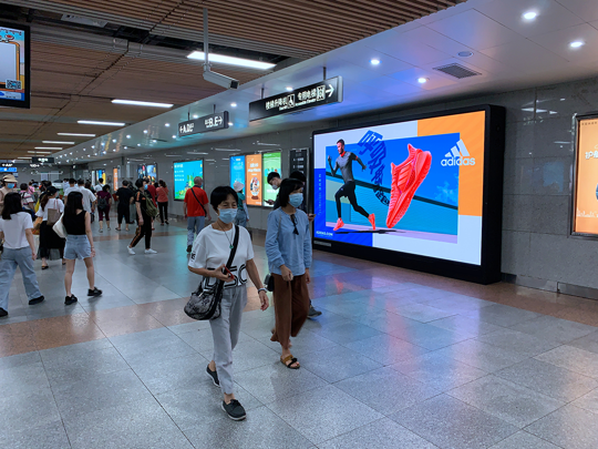 廣州地鐵站LED大屏廣告價格收費?廣州地鐵站電視墻大屏廣告案例