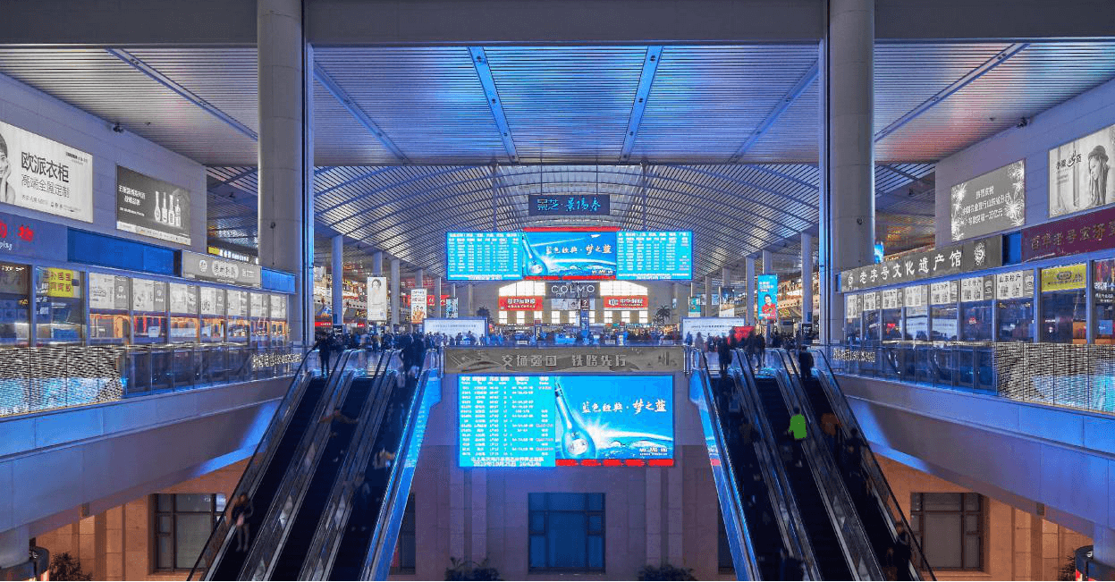 濟南西站候車大廳LED大屏套裝廣告