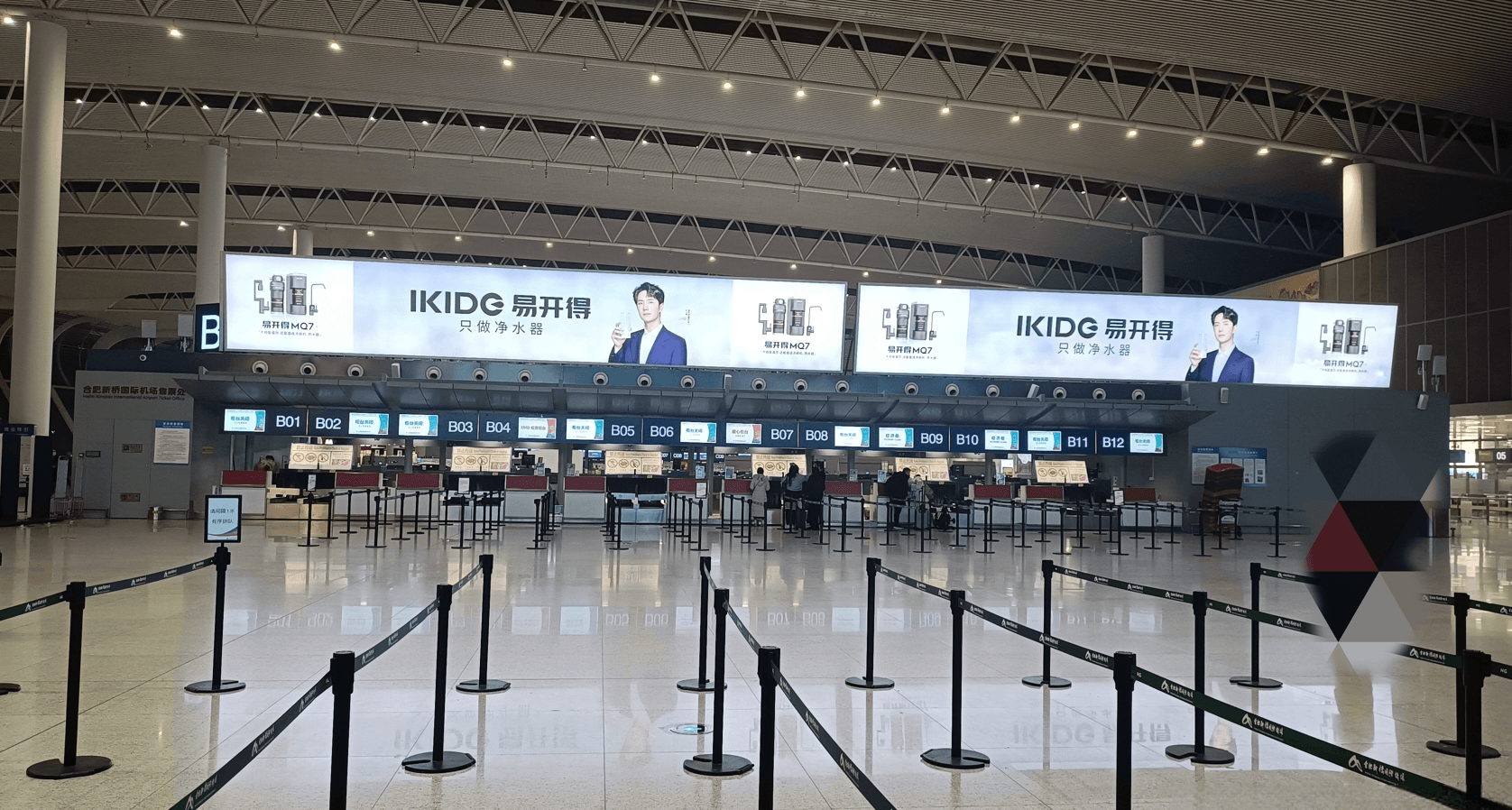 合肥機(jī)場出發(fā)大廳B辦票島上方燈箱廣告