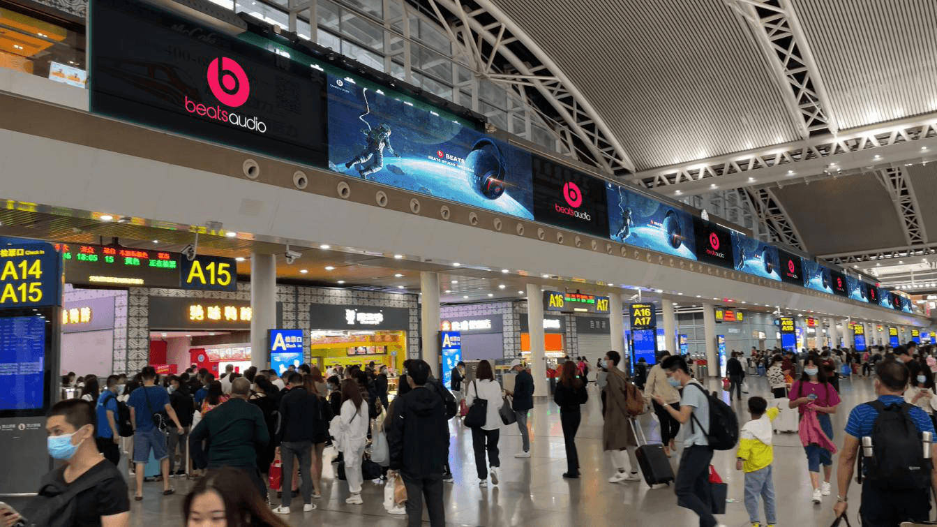 廣州南站候車大廳候車層檢票口上方LED大屏廣告