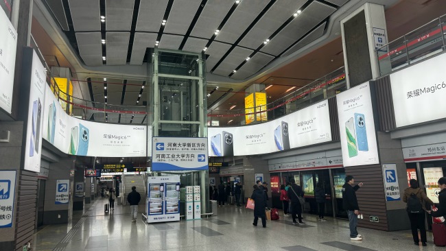鄭州地鐵1號線鄭州東站站臺環(huán)繞品牌區(qū)廣告