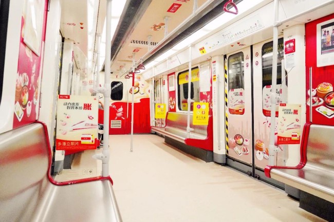 廣州地鐵列車廣告覆蓋地鐵全線客流。多種超大媒體全車包圍,全線發(fā)揮無限品牌展示創(chuàng)意。沉浸式體驗(yàn)車廂內(nèi)視覺盛宴,移動的品牌形象長廊。媒體內(nèi)容干擾小、閱讀時間長、受眾關(guān)注度高,更易建立品牌好感,促進(jìn)二次傳播,適合品牌新品上市、節(jié)點(diǎn)營銷等類型的宣傳需求。嗎丁啉聯(lián)名餓了么、大參林一起為廣州市民奉上充滿創(chuàng)意元素的經(jīng)典廣州地鐵列車廣告,地鐵車廂內(nèi)紅黃色塊搭配明亮又喜慶,可愛的品牌吉祥物在廣州特色美食中格外矚目,廣州地鐵列車廣告動力出發(fā),好胃不怕脹。