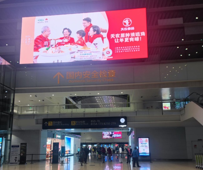 廣州機場T2國內(nèi)出發(fā)值機大廳安檢通道上方LED大屏廣告