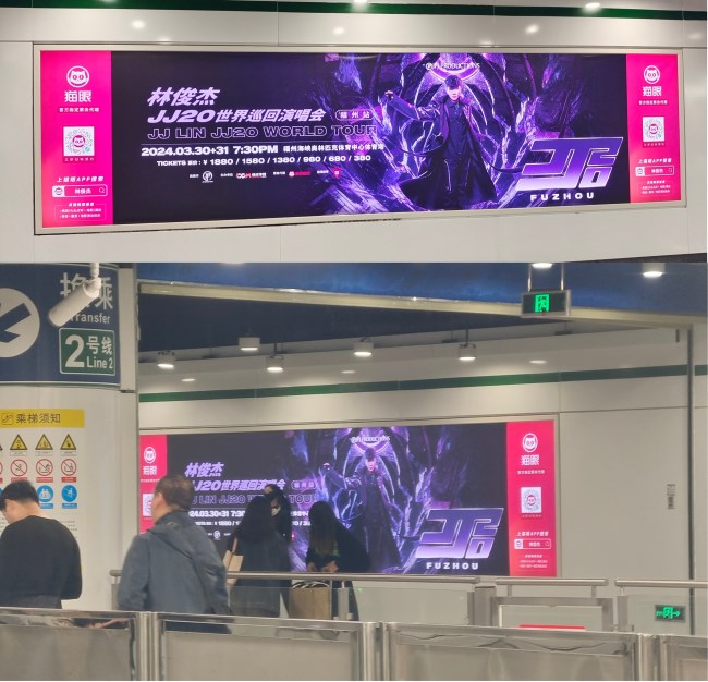 福州地鐵演唱會(huì)廣告投放案例,福州地鐵站燈箱內(nèi)包車廣告價(jià)格收費(fèi)