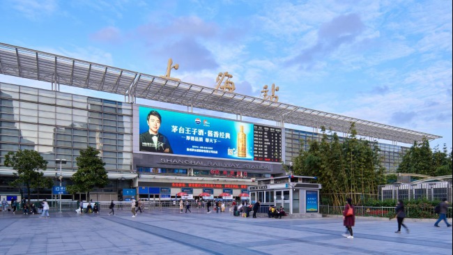 上海高鐵站進站口打卡點站棚L(fēng)ED大屏廣告,上海高鐵站廣告價格收費