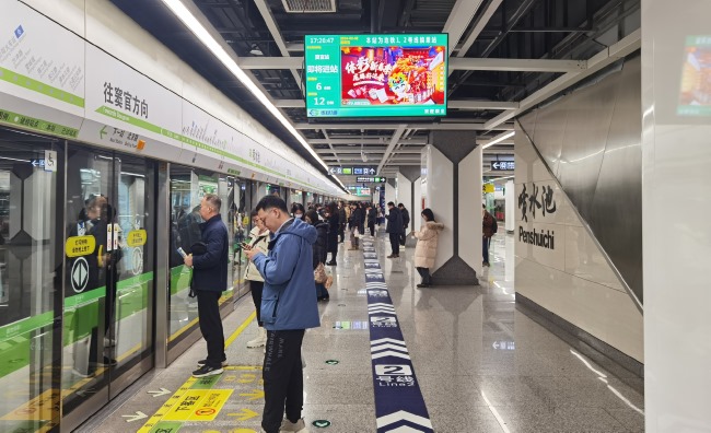 車廂內(nèi)冠名——到站 (單向):貴州銀行(8個字內(nèi))提醒您,竇官站到了,右側(cè)車門將會打開,下車時請注意列車與站臺之間的空隙。