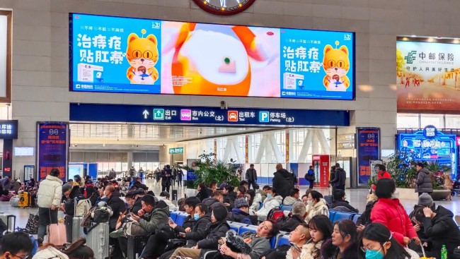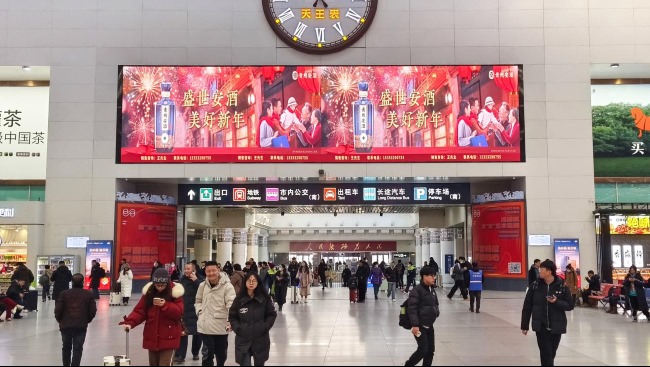 沈陽北站候車大廳南北兩側(cè)進(jìn)站口站棚墻面LED大屏廣告位于離地近6米的站棚墻面,視野良好可視范圍廣。巨型LED大屏廣告橫長超20米,高3.6米,且位于進(jìn)站口上方,廣告存在感極強(qiáng)。沈陽北站地標(biāo)性廣告位更能提升品牌吸引力和公信力,是品牌發(fā)布的巨型名片,適合文體活動(dòng)、商業(yè)促銷、新品上市、公司周年等政企客戶廣告宣傳。