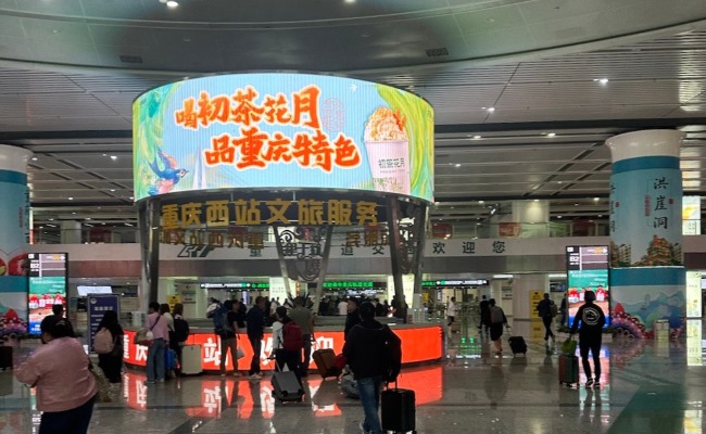 重慶西高鐵站到達大廳中央服務(wù)臺環(huán)形LED大屏廣告,重慶西站廣告價格