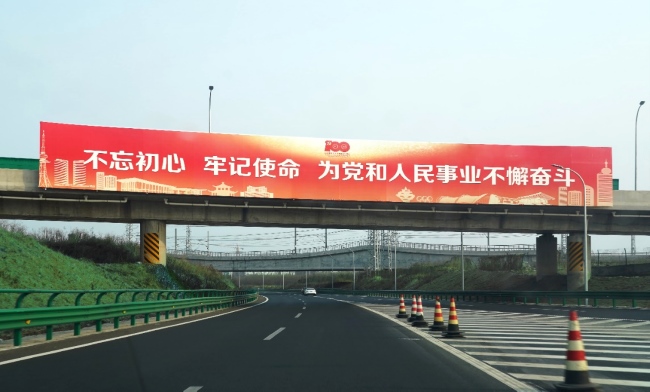青島膠東機(jī)場(chǎng)高速跨線橋大牌廣告