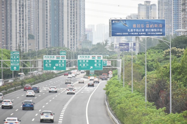重慶內(nèi)環(huán)高速西環(huán)立交三面立柱三面翻大牌廣告