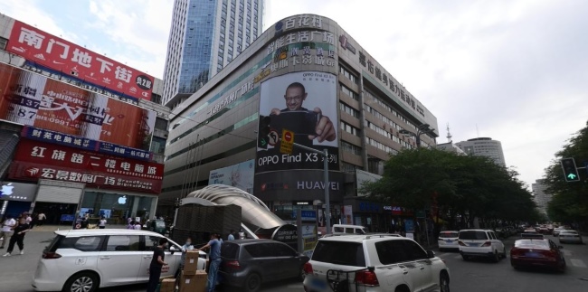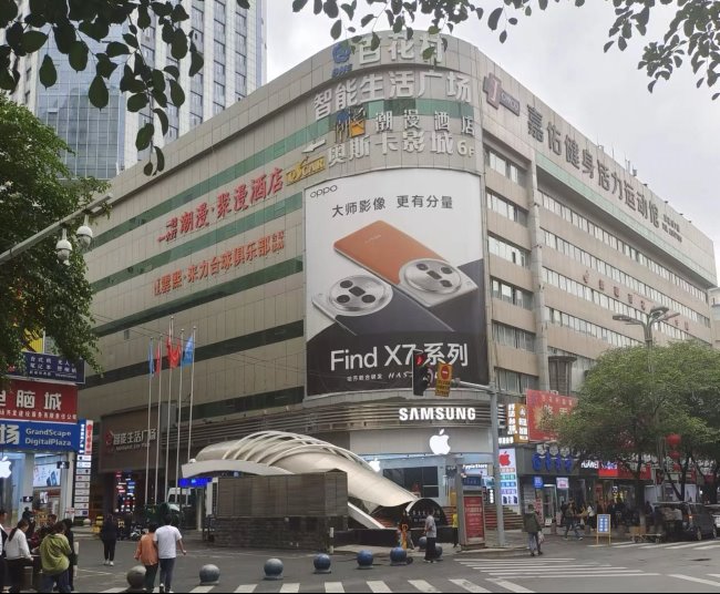 烏魯木齊中山路百花村電腦城外墻大牌看板廣告位于首府城市CBD,中山路與紅旗路交匯口紅綠燈上方,是烏魯木齊市內(nèi)純商業(yè)區(qū)域,人車流量密集,手機(jī)數(shù)碼一條街鏈接城市區(qū)域內(nèi)動脈的新型城市經(jīng)濟(jì)區(qū)域,上百家各行業(yè)標(biāo)桿企業(yè)匯聚此地,輻射大小西門,大西門、文藝路商圈核心位置,左側(cè)為匯嘉時代,對面為亨得利表行,中間是紅旗路電腦城。大牌寬13.5米,高度超15米,總面積超200平方米,24小時不間斷展示,面積巨大效果震撼,位于高處視野良好。