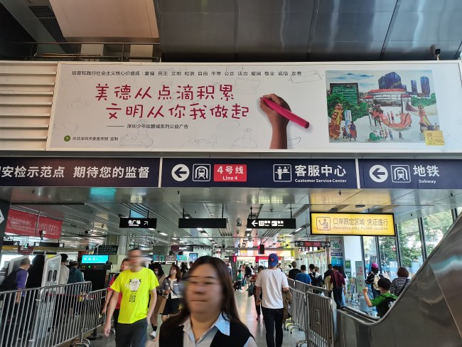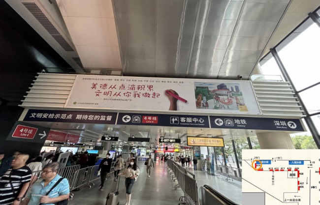 深圳福田口岸一樓大廳入境扶梯口上方燈箱廣告