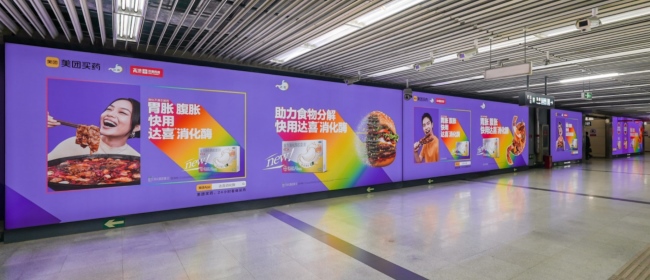 媒體內(nèi)容:超大LED*1塊+超大燈箱*4塊+南側(cè)墻貼+南側(cè)包柱*4根