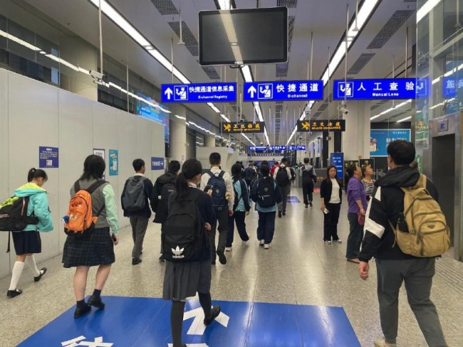 深圳福田口岸三層大廳旅客出境方向墻體燈箱廣告