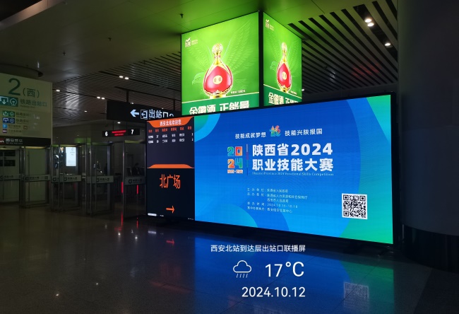 西安北站到達(dá)大廳LED大屏廣告,西安北高鐵站大屏廣告價格
