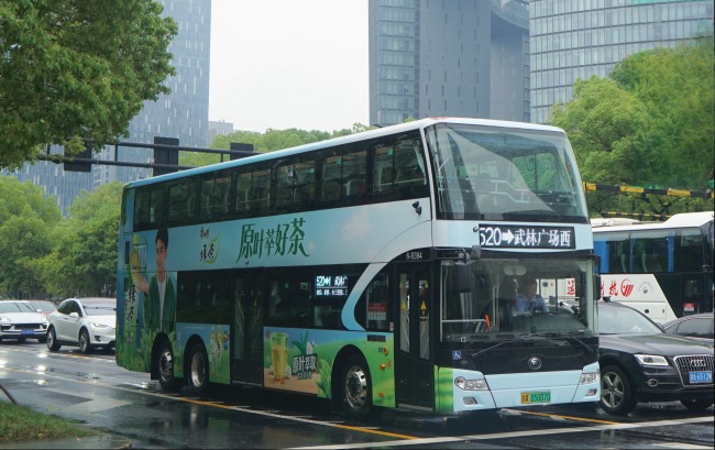 本次第一戶外推薦的線路是往返于上城區(qū)錢江新城公交站和拱墅區(qū)武林廣場(chǎng)西公交站之間的的雙層公交520路公交車,全程11公里。途經(jīng)主干道:環(huán)城北路、延安路、西湖大道、解放東路、錢江路等。串聯(lián)起了京杭大運(yùn)河、杭州西湖等自然風(fēng)景名勝,和武林廣場(chǎng)、湖濱、錢江新城等主要商圈。杭州雙層公交車的車身通常比單層公交車更高更大,尤其是在車身的兩側(cè)和后部,提供了更為廣闊的廣告展示空間。廣告主可以利用這些大面積的展示區(qū)域,放置高清晰度、大尺寸的廣告畫面或創(chuàng)意內(nèi)容,產(chǎn)生強(qiáng)烈的視覺沖擊力,吸引路人和車上乘客的注意。