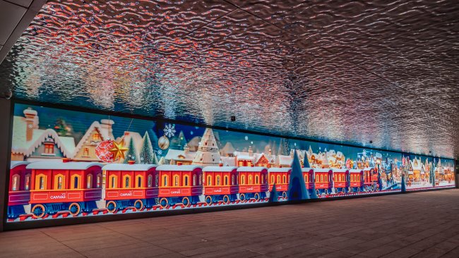 蘇州水上光影長(zhǎng)廊LED大屏廣告36米超長(zhǎng)橫屏形成“視覺長(zhǎng)廊”,4K動(dòng)態(tài)畫面配合橋底弧形結(jié)構(gòu),營(yíng)造包裹式觀感,夜間亮化后可視距離超500米,品牌記憶度較普通LED提升60%。北岸連廊連接圓融天幕東街與西街(日均客流量超8萬人次),南岸連廊直通久光百貨與圓融廣場(chǎng)(日均客流量超10萬人次),LED橫屏橫跨36米,雙屏展示覆蓋雙向客流。