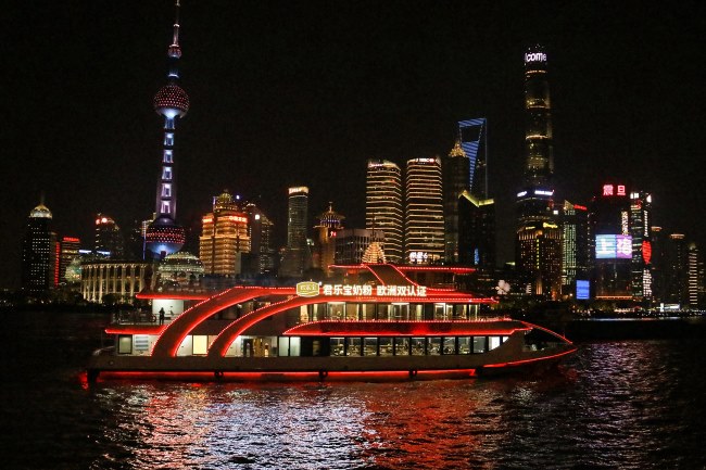 上海黃浦江外灘游船船身招牌廣告橫長15米,高1.5米,位于船身外側(cè)上方,平行于游客岸線視線,規(guī)避仰視疲勞,在 500米距離內(nèi)清晰可辨。每日17:00-22:00亮燈時段精準(zhǔn)匹配外灘燈光秀及游船觀光高峰,動態(tài)光源在夜景中形成視覺錨點,曝光效率較日間提升 200%+。以泰康保險案例為參照,年均航行800班+商務(wù)/婚慶包船210班,目標(biāo)客群年均觸達(dá)≥3.3次,形成年均730航次飽和曝光。游客拍攝夜景時船體廣告自然入鏡,社交媒體二次傳播撬動億級曝光增量。