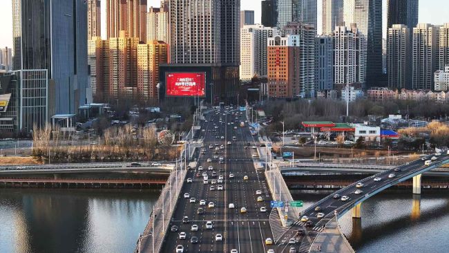 沈陽皇朝萬鑫LED大屏廣告1037.9㎡超大面積,高度23.64米,形成青年大街制高點(diǎn)視覺符號(hào),有效識(shí)別距離超500米。大屏正對(duì)渾河橋交通咽喉,車輛紅燈等待時(shí)長(zhǎng)60秒+,日均曝光量超100萬次。同步覆蓋青年大街雙向車流與渾河兩岸行人,作為青年大街入口“南大門”唯一超千平米LED大屏,其地理壟斷性與歷史認(rèn)知度形成稀缺曝光資源,尤其適合品牌戰(zhàn)略級(jí)形象發(fā)布。