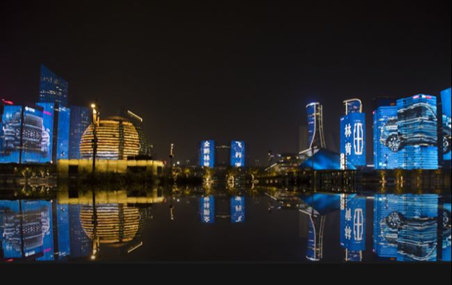 杭州錢(qián)江新城燈光秀樓體LED大屏廣告